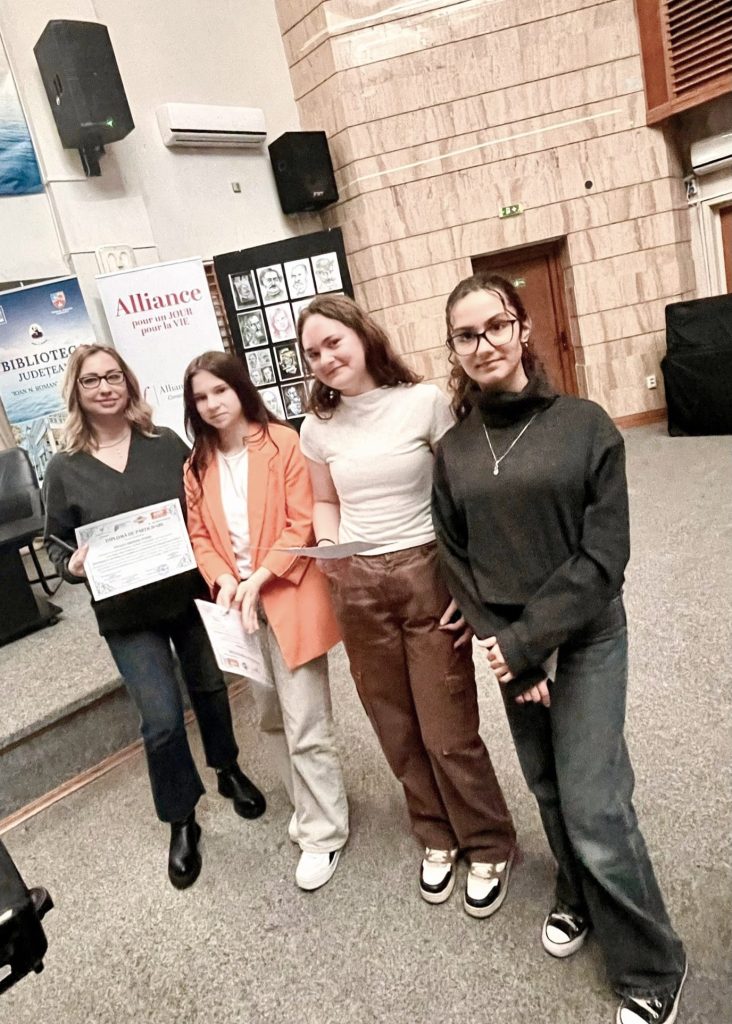 Le Lycée Théorique « Ovidius » s’est distingué par la participation de cinq élèves : Melek Sadâc, Ciocan Iulia (classe de 7e C), Ardeleanu Crina (classe de 10eB), Păuleț Dragoș et Stan Miruna (classe de 6e A). À travers des textes, des images et des créations artistiques, ils ont dressé le portrait de leur professeur de français, mettant en lumière l’impact profond qu’il a sur leur parcours.