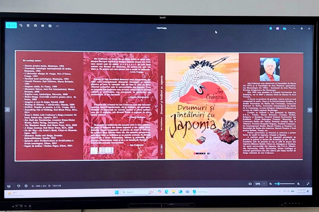 Dans le cadre de la Semaine de la Francophonie, le 18 mars 2026, la petite Aula du Lycée Théorique « Ovidius » de Constanța a accueilli une rencontre d’exception avec l’artiste et écrivain Ion Codrescu, à l’occasion de la présentation de son ouvrage « Routes et rencontres avec le Japon » (Éditions Eikon, 2025).