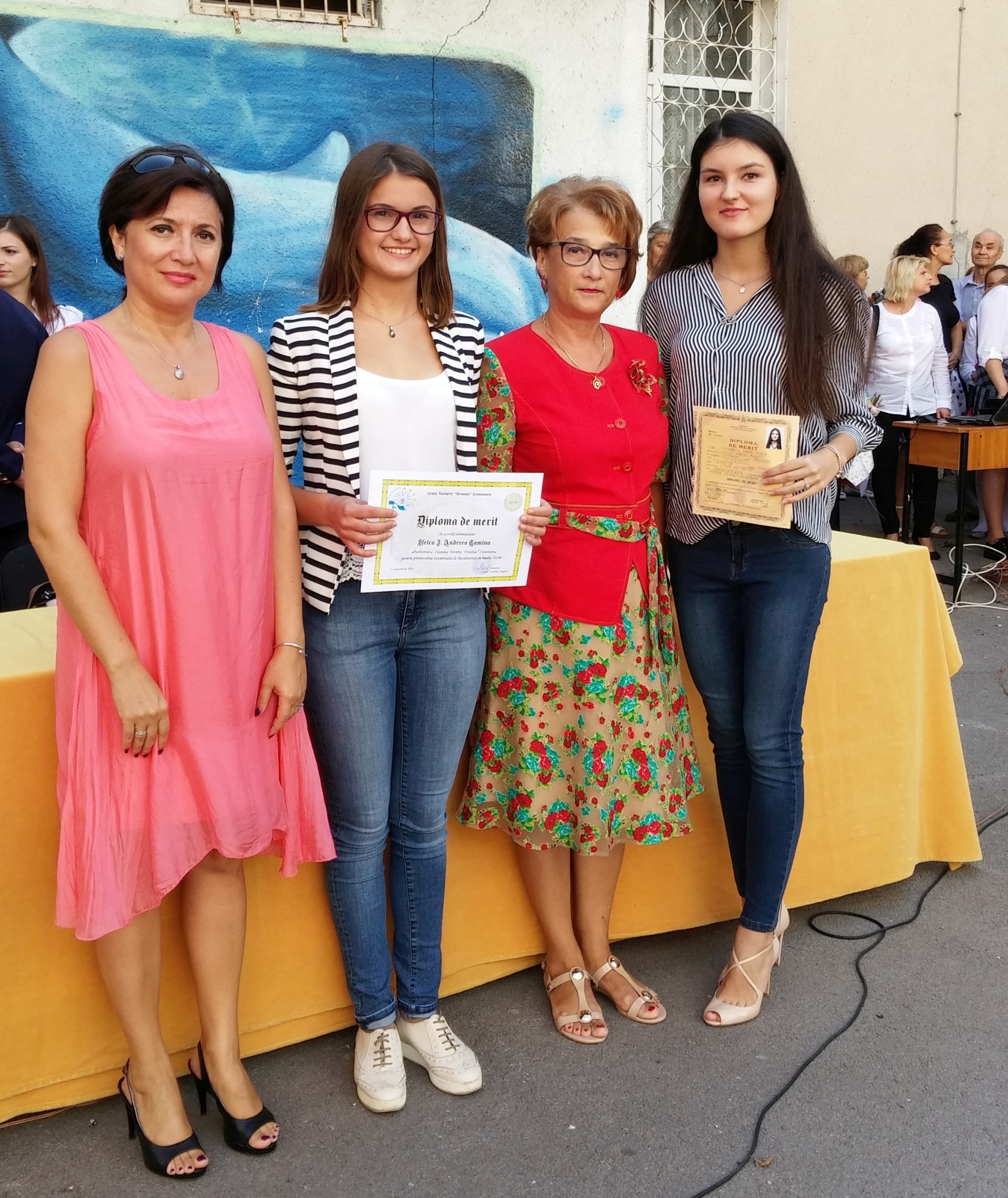 Cu ocazia festivității de deschidere a noului an școlar, au fost acordate diplome de merit celor două absolvente, Agnes Morariu și Tamina Sfetcu, care au promovat examenul de bacalaureat cu media 10.